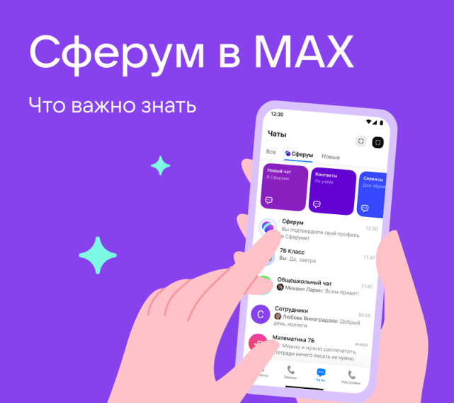 С сентября 2025 года все учебные чаты и профили СФЕРУМа переведены в национальный мессенджер MAX. Это часть цифровой трансформации в образовании: все функции Сферума сохранятся, но в новом интерфейсе и с новыми возможностями.